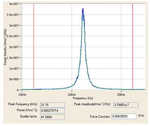 В термическом методе константа жесткости кантилевера калибруется регулированием спектральной плотности мощности колебаний кантилевера по известной лоренцевой кривой.