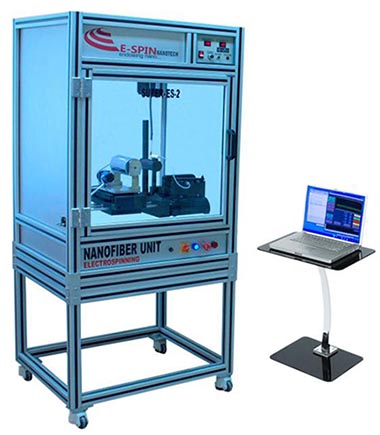 Электроспиннинг является одним из самых универсальных методов, используемых для образования волокон в нанодиапазоне. Типичная установка для электроспиннинга состоит из шприцевого насоса, прикрепленного к игле (фильере), источника высокого напряжения и коллектора. Между фильерой и коллектором приложен электростатический потенциал. Жидкость медленно прокачивается через фильеру. Капля удерживается собственным поверхностным натяжением на кончике фильеры, пока не приобретет электростатический заряд. После порогового накопления зарядов полимерная жидкость принимает коническую форму и из капли выделяется тонкая струйка волокон, осаждаемых на коллектор.