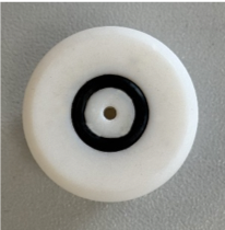 Внутри прибора имеется камера с вращающимся валом, на который крепится держатель. Держатель представляет собой круг из материала Delrin с уплотнением и центральным отверстием для крепления подложки при помощи вакуумирования. Помимо этого метода, закрепить образец можно при помощи двустороннего скотча или клейкой лентой. В основной комплектации прибора один вид держателя. Опционально доступны другие виды держателя под различные размеры подложки.