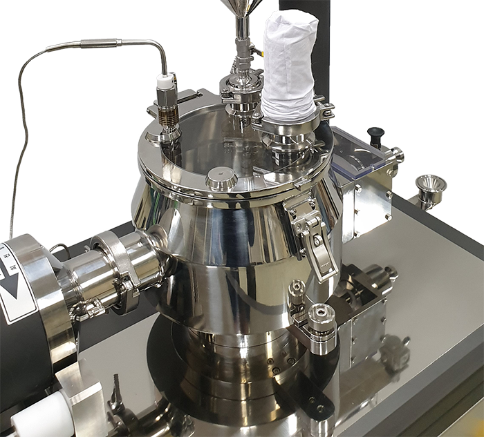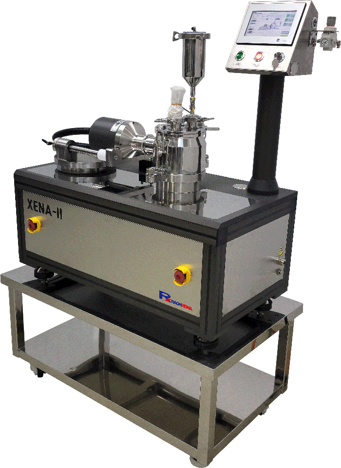 Смеситель-гранулятор с высоким усилием сдвига XENA-II позволяет регулировать четыре критических параметра. Широкий диапазон скоростей рабочего колеса и измельчителя, высокочувствительная система управления скоростью потока жидкости, размером капель и крутящим моментом рабочего колеса для регулирования технологического процесса.