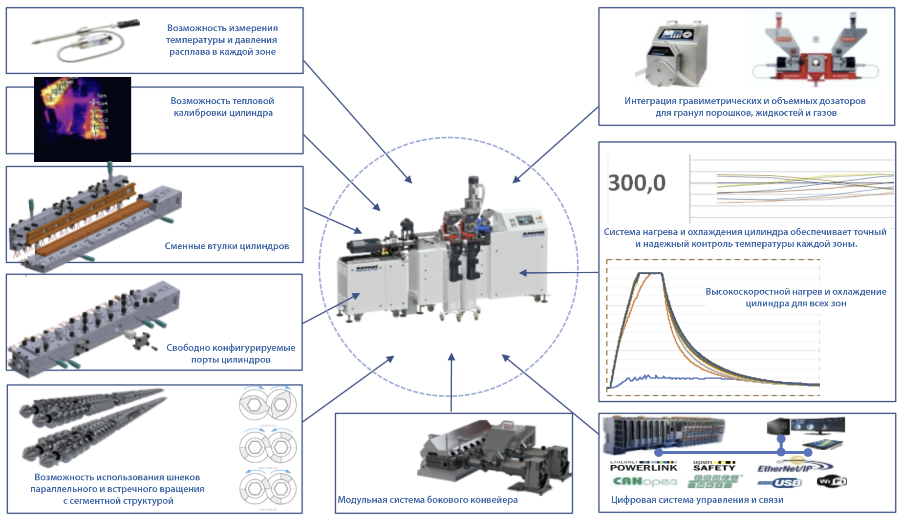 Уменьшение размера оборудования в сочетании с адаптируемостью практически к любой задаче обработки и простотой эксплуатации системы делают лабораторные экструдеры отличным исследовательским инструментом.