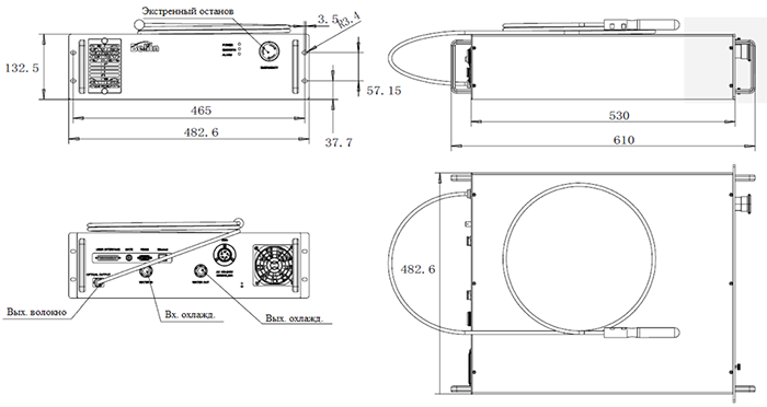 Рис. 1. Типовые габаритные размеры лазера (в мм).