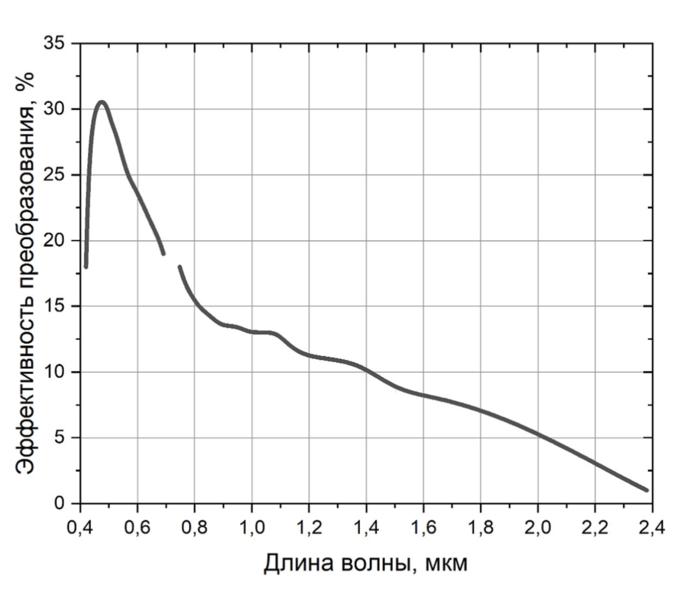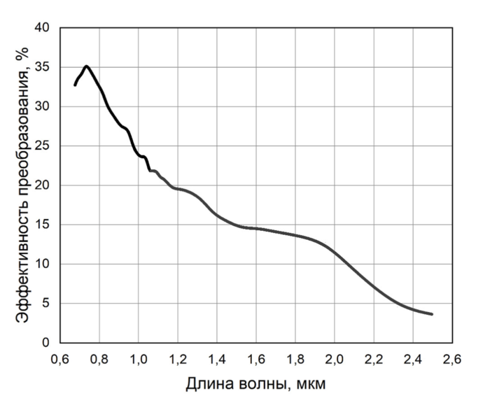 | Эффективность преобразования, % | Сигнальная волна 1) | 30 | 20 | 25 |
