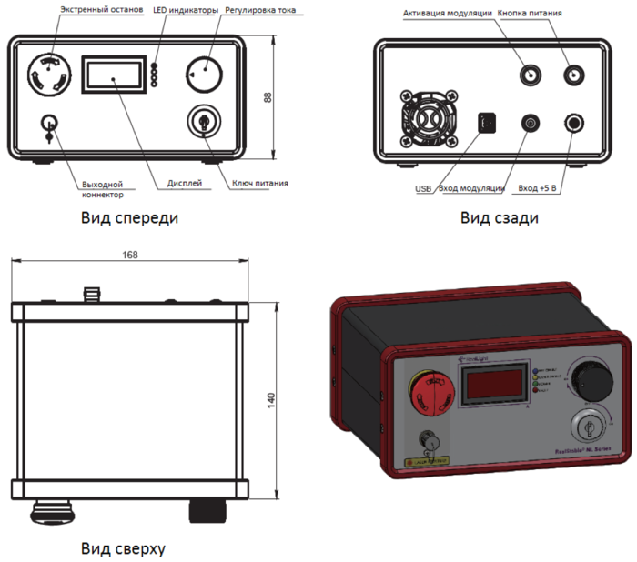 Рис. 3. Габаритные размеры лазера серии NLM (в мм).