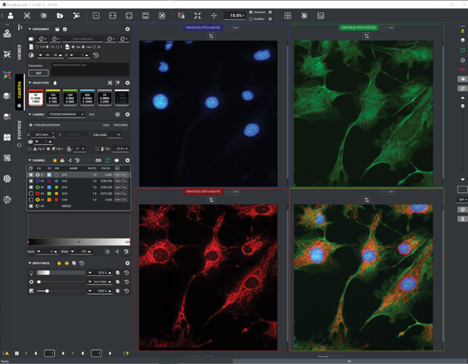 Специализированное программное обеспечение для F1-CIS XB управляет микроскопической системой и ее компонентами с помощью простого и интуитивно понятного пользовательского интерфейса.