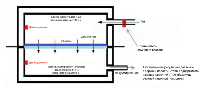 Запатентованная технология автоматического поддержания перепада давления автоматически поддерживает разницу давлений между двумя сторонами образца (давление поддержания перепада давления можно регулировать) со встроенным высокоточным датчиком давления с разрешением 0.01 Па, хорошей стабильностью и низким уровнем отказов.