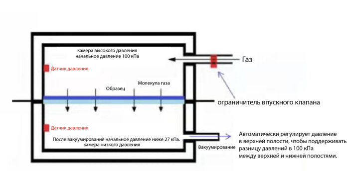 Запатентованная технология автоматического поддержания перепада давления автоматически поддерживает разницу давлений между двумя сторонами образца (давление поддержания перепада давления можно регулировать) со встроенным высокоточным датчиком давления с разрешением 0.01 Па, хорошей стабильностью и низким уровнем отказов.