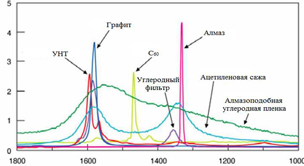 Рис. 3. Исследование различных углеродных материалов.