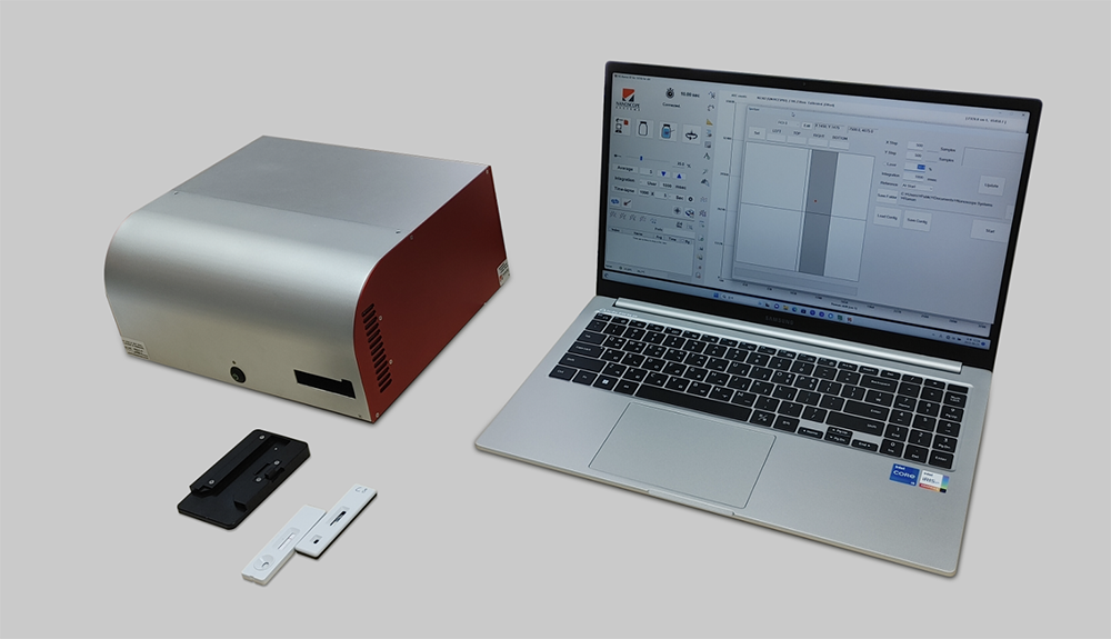 Ramcheck-P200 – это компактный рамановский спектрометр с функцией автоматического картирования. Он предназначен для получения рамановских сигналов от образцов в виде SERS-полосок или SERS-картриджей. После установки образца в прибор оптическая система рамановского спектрометра перемещается в заданные координаты и регистрирует рамановский спектр по каждой координате. Специальная конструкция полосок позволяет пользователю удобно получать сигнал с контрольной и тестовой линий, координаты которых задаются пользователем. Это очень эффективное устройство для многократного проведения контролируемых экспериментов.